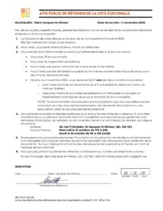 Avis public - Révision de la liste électorale