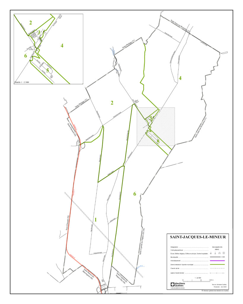 Répartition du territoire de la municipalité de Saint-Jacques-le-Mineur par districts
